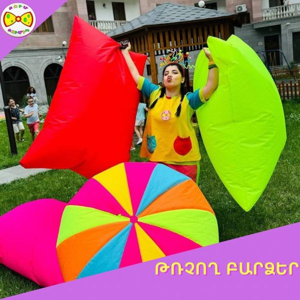 Թռչող բարձեր Արժեքները՝ 30 րոպե 15.000 դրամ 3 բարձ + 1 գնդակ, 30 րոպե 20,000 դրամ. 5 բարձ 2 գնդակ, 30 րոպե 30,000 դրամ 7 բարձ 3 գնդակ, 30 րոպե 40,000 դրամ 7 բարձ 3 գնդակ + 10 մեծ գունավոր փուչիկներ