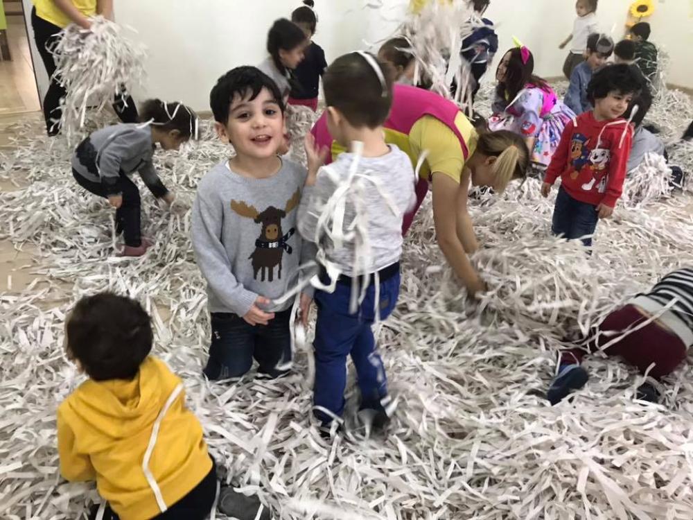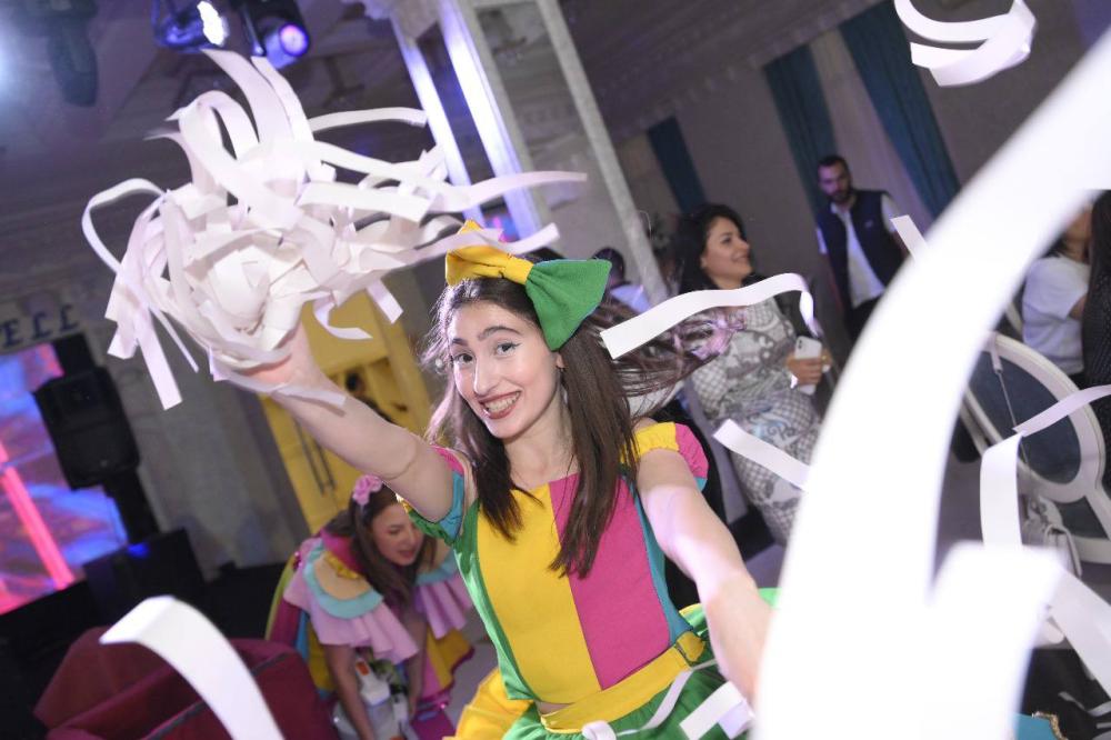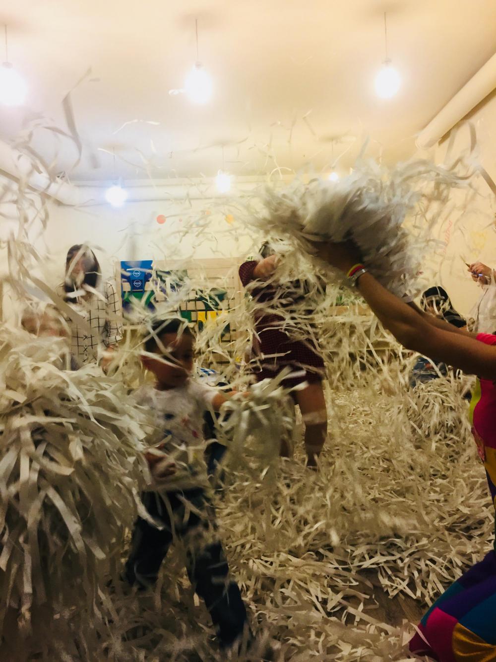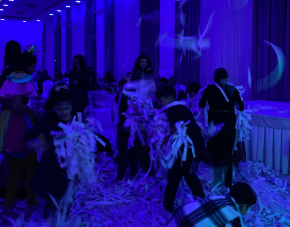 Մոտենում են 2 խաղավար, իրենց հետ բերում են կտրատված թղթեր, բերում են սարքը, որով պետք է թղթերը փչեն, կազմակերպում են հետաքրքիր խաղեր, մրցույթներ: Ծրագրի տևողությունը 1 ժամ: Արժեքը սպիտակ թղթերով` 35000 դր, գունավոր թղթերով`40000 դր, արծաթափայլ թղթերով `50000 դր: Տեխնիկան ներառված է: Ուշադրություն՝ մեզ մոտ օգտագործվում է բացառապես նոր, չօգտագործված թուղթ։ Օգտվեք մեր թղթե շոուից և կհամոզվեք ինքներդ։