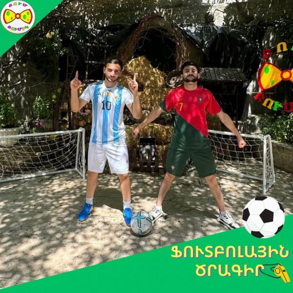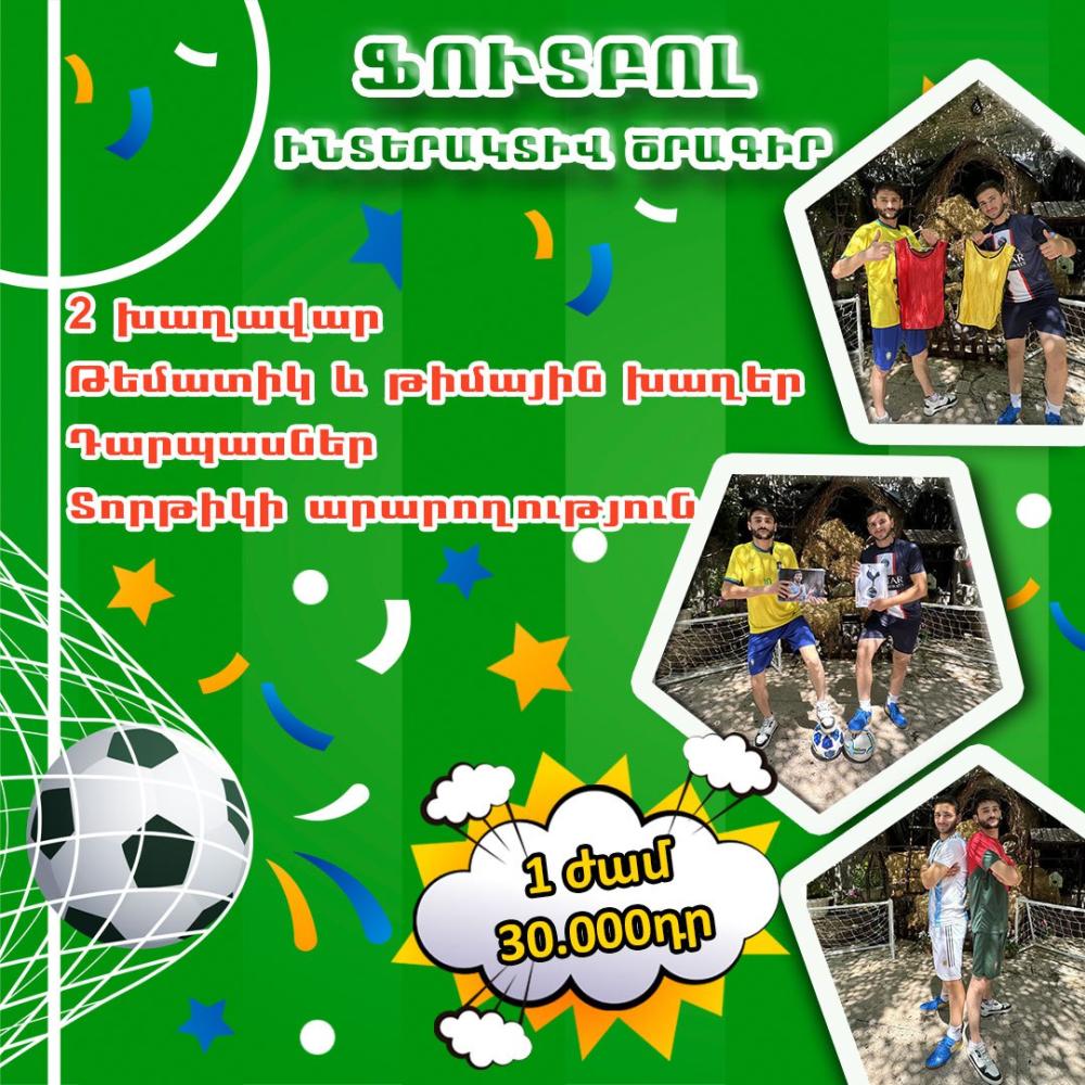 Ֆուտբոլային ծրագիրը ներառում է թեմատիկ տարբեր խաղեր՝ ներառյալ երկու ֆուտբոլային դարպասներ։ Ծրագիրը կազմակերպում են 2 խաղավարները, որոնք հանդես են գալիս ճանաչված ֆուտբոլիստների համազգեստով, և իրենց հետ բերում են համազգեստներ մինչև 20 երեխայի համար։ Տևողությունը 1 ժամ է, արժեքը՝ 30000դր։